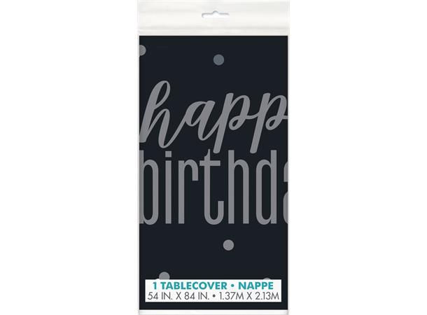 Sort & Sølv Glitz - "Happy Birthday" Plastikkduk. Varenr: 10083583